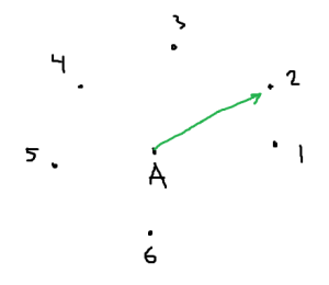 Kemudian, nilai f(\overrightarrow{AB}) adalah penjumlahan dari g(\overrightarrow{AC}) sehingga \overrightarrow{AC} itu CCW terhadap \overrightarrow{AB}. Artinya kita tinggal iterate aja.